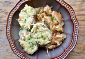 This is the perfect autumnal dish to feed to your family or a small crowd after bringing home a nice chunk of chicken of the woods mushroom (Laetiporus). This shelf fungus is aptly named, as the texture and flavor are quite similar to chicken, making it perfect for dishes like this.